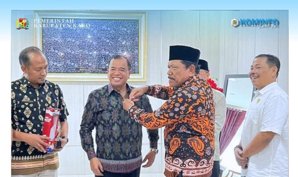 KARO WAHANANEWS.CO Bupati Karo Brigjen Pol [ Purn]Dr. dr. Antonius Ginting, Sp.OG.,M.Kes,menerima penyematan Pin Merah Putih dari Wakil Gubernur Bengkulu, H. Mian, dalam audiensi resmi di kantor Pemerintah Provinsi Bengkulu, Jumat (14/11/2025).