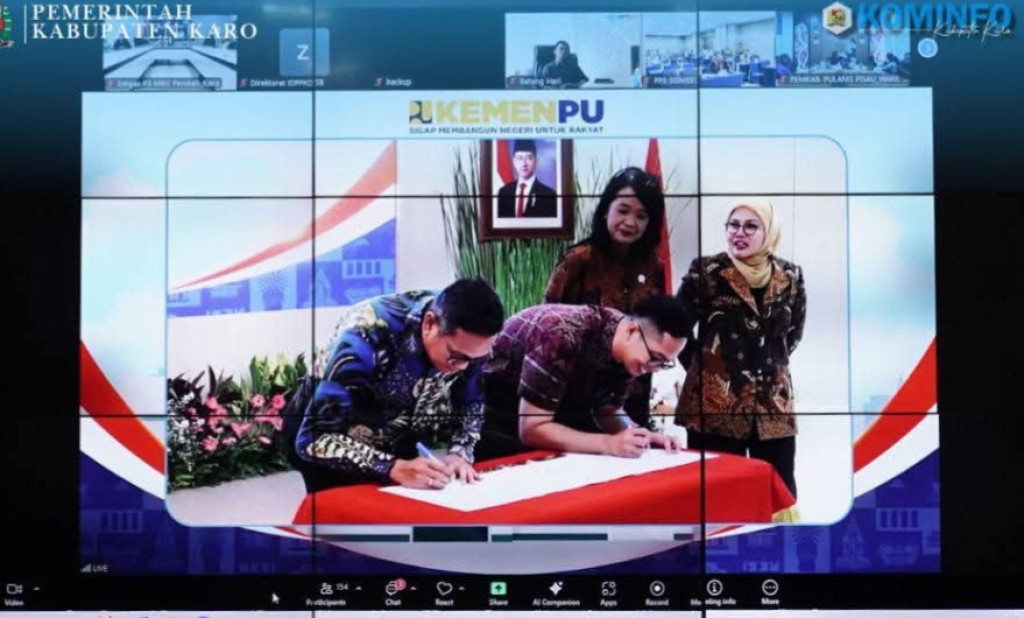 KARO WAHANANEWS.CO Kabanjahe - Pemerintah Kabupaten Karo mengikuti penandatanganan kontrak pekerjaan pembangunan Gedung Satuan Pelayanan Pemenuhan Gizi (SPPG) atau dapur Makan Bergizi Gratis [MBG] Tahun Anggaran 2025 yang diselenggarakan Kementerian Pekerjaan Umum bersama Badan Gizi Nasional [BGN] yang dihadiri melalui zoom meeting di Ruang KCC Kantor Bupati Karo, pada Jumat [21/11/2025].